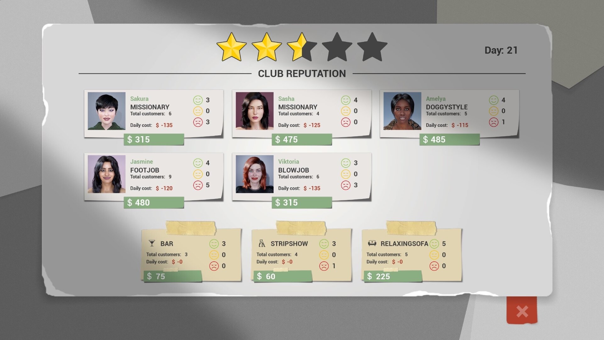 Another Dick in the Wall is a management game for adults only. You have to manage a club and make it the most popular in town. Hire the best staff, build and improve the club, and satisfy all your customers' desires.
