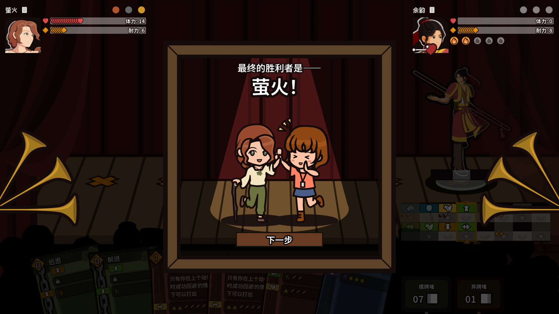 扮演你选择的武者,用智慧战胜对手!这款策略卡牌游戏带来了基于“时点”的独特回合系统。你需要判断何时应该冒险使用有破绽的招式,或是让对手为其草率的决定付出代价。可玩角色风格各异,各自拥有一套可选的招式卡组,并将他们的个人机制融入其中。