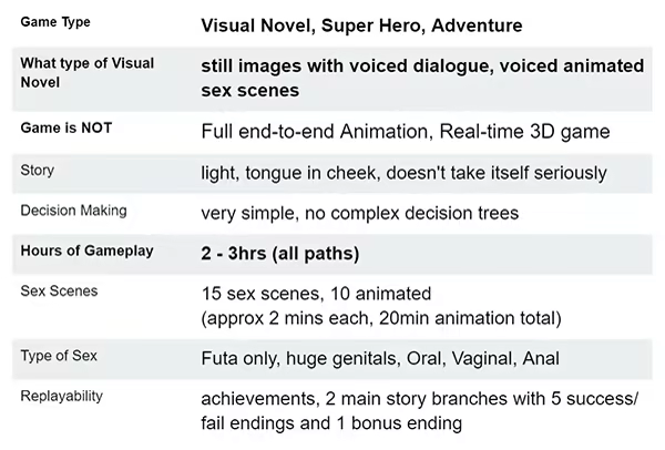 • visual novel with a twist on the super hero genre with animated sex scenes