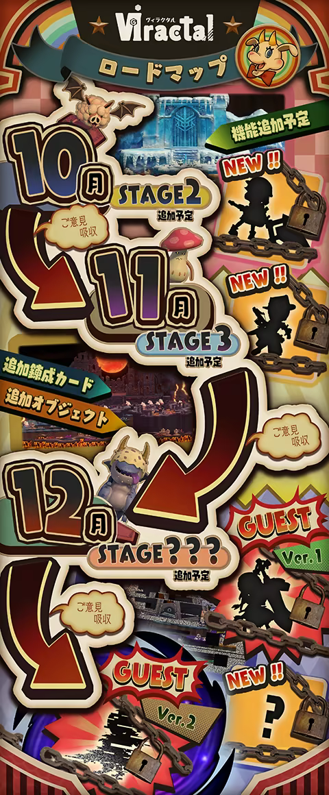 今後のアップデートで、新たなキャラクター、ステージ、カード、イベントなど、さらなるコンテンツの追加を予定しています。”