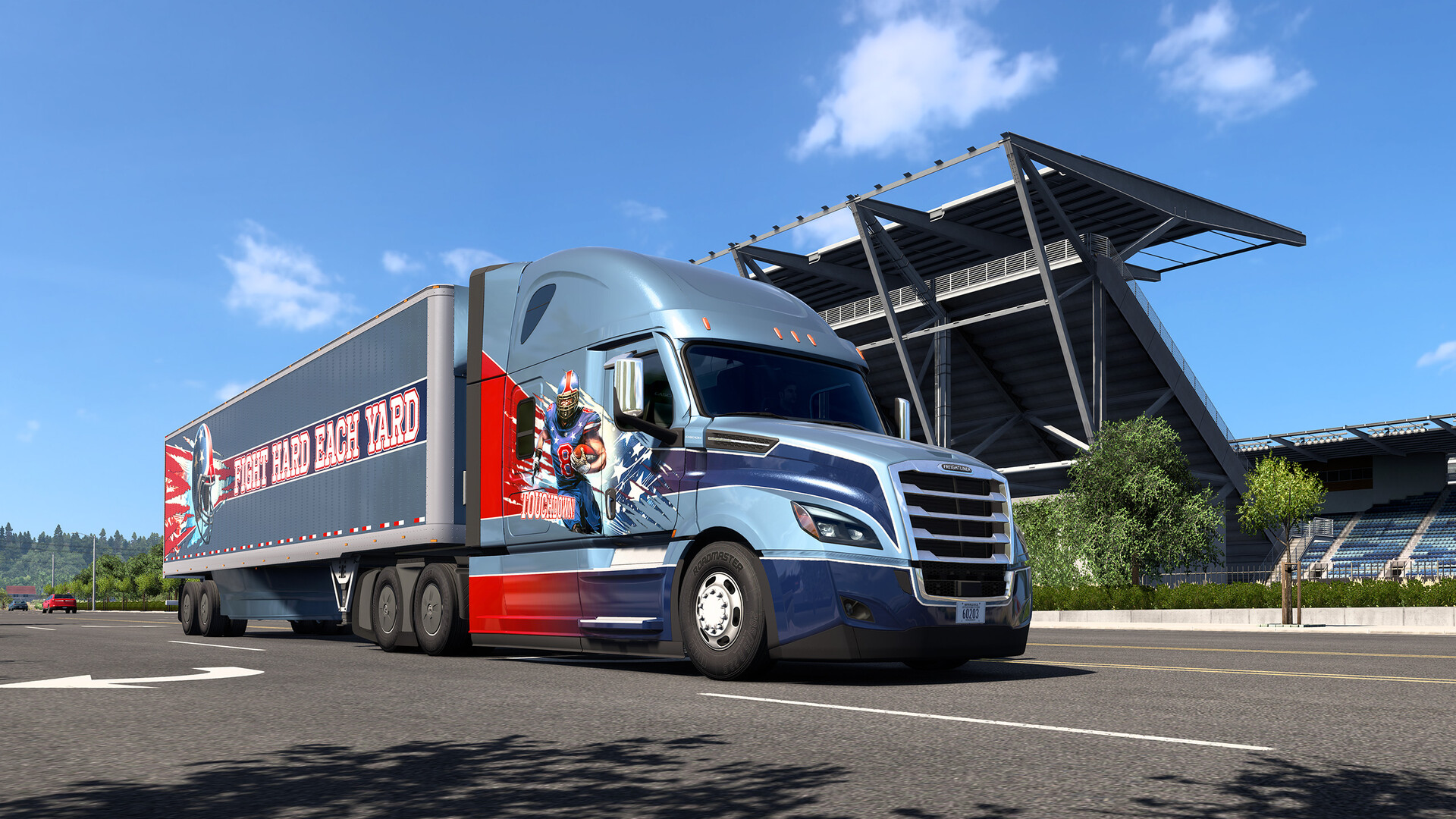 Calling all Sports Fans! We are introducing the Sports Paint Job Pack for American Truck Simulator. Decorate your truck with these beautiful American sports-themed paint jobs. From the court to the rink, they will have your truck looking like a heavyweight champion in no time!
