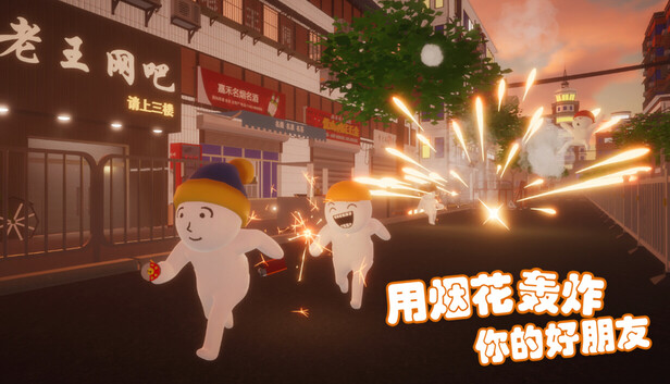 你回到了小时候,这里还是千禧年,但这里有人! 这里没有禁燃,你可以邀请你的好朋友在这尽情燃放各种烟花! 最多支持8人联机,立即开始一场混乱的烟花大战! 这些烟花都有足够的自由度可以组合发掘出各种奇妙的效果,让其他人在你创造的意外中被击败!