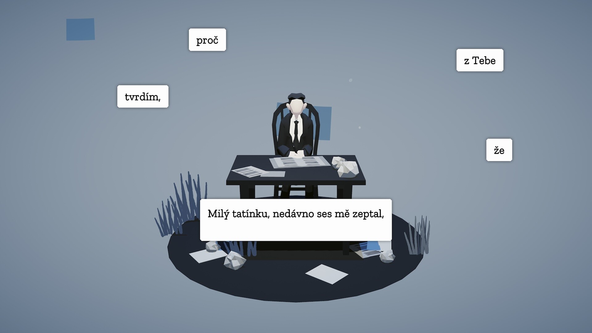 • plně dabovaný větvící se příběh, který je adaptací Kafkových knih Proces, Zámek a Dopis otci