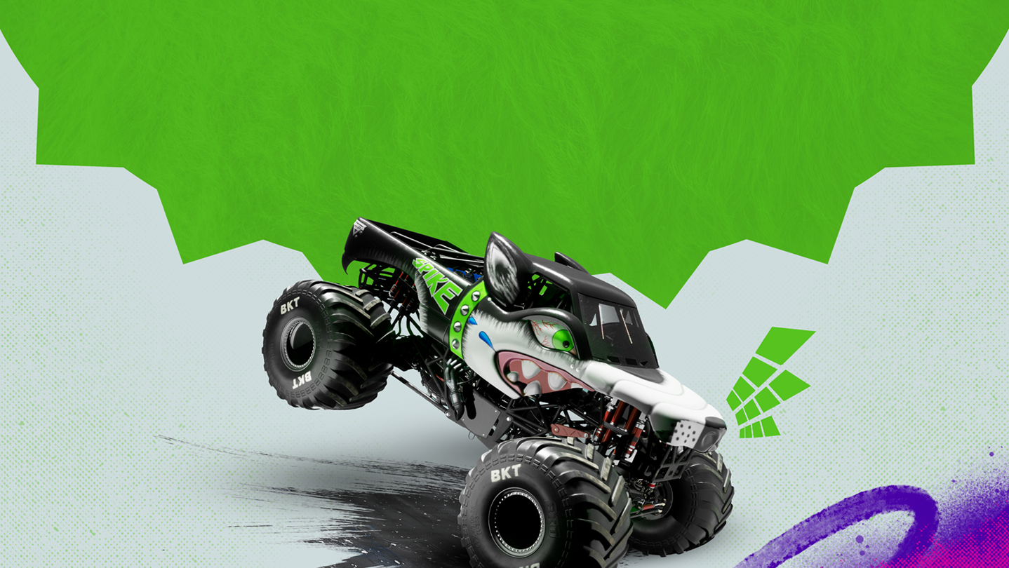 Spike Unleashed is a monster truck inspired by a wild Siberian Husky who started competing on Monster Jam™ tracks in 2004. Can you tame him?