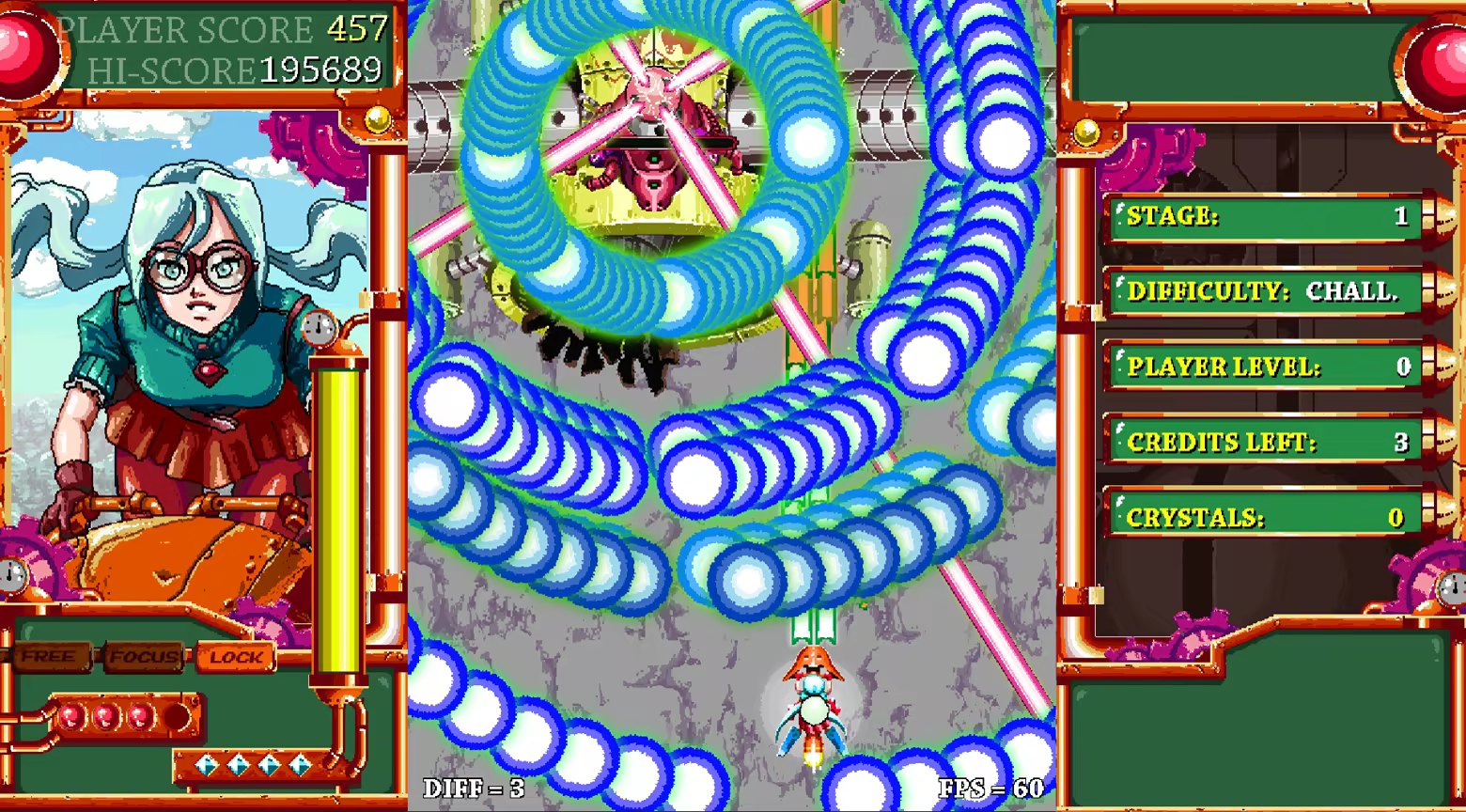 Shockwave Triggers is a pure arcade game, which is thanks to its tight controls, tiny hitboxes for both player and bullets, simple but effective mechanics and the fully customizable support of gamepads, keyboard and arcade sticks.
