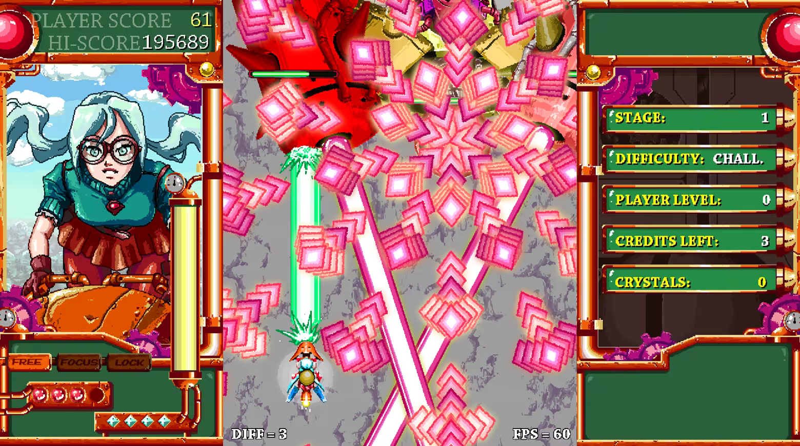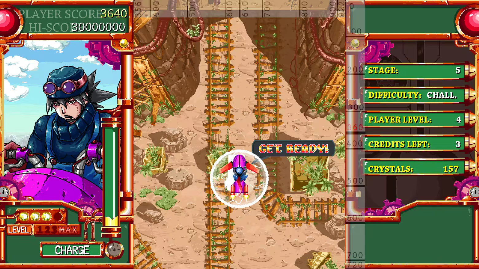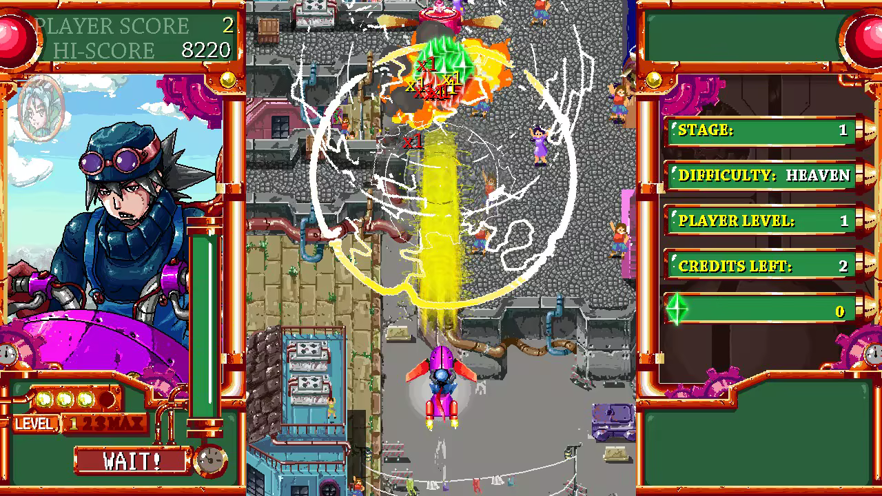 • Two different players: Each play has their own playstyle. Amira: is the more traditional shmup player. Collects items and power ups to get stronger. Turbo B: is more of the charge and wait style, he gets stronger by shooting enemies down.