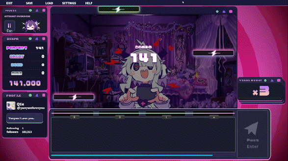 This is a rhythm-adventure game where you play as a hikikomori (shut-in) girl who’s high on denpa songs. Become Yunyun-brained and lose all self-control to anonymously post on social media and destroy the world with your Yunyun brain rot.