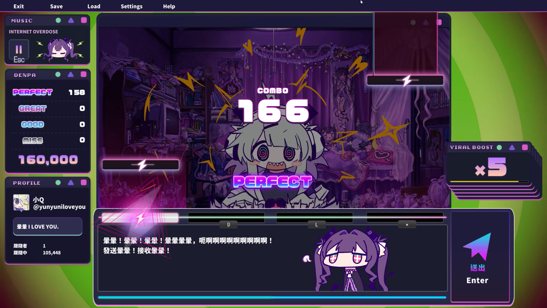 在這款節奏冒險遊戲裡,玩家將扮演嗑了無數電波歌曲的家裡蹲少女,上網PO出各種萌萌怪文,好讓全世界拜倒在暈暈之下。