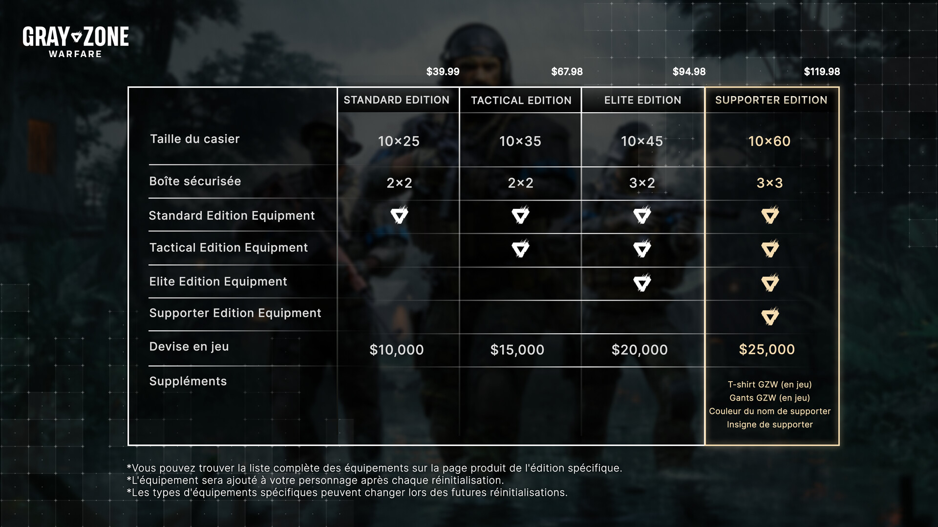 Comprend 3 article(s) : Gray Zone Warfare - Tactical Edition Upgrade, Gray Zone Warfare - Elite Edition, Gray Zone Warfare - Supporter Edition