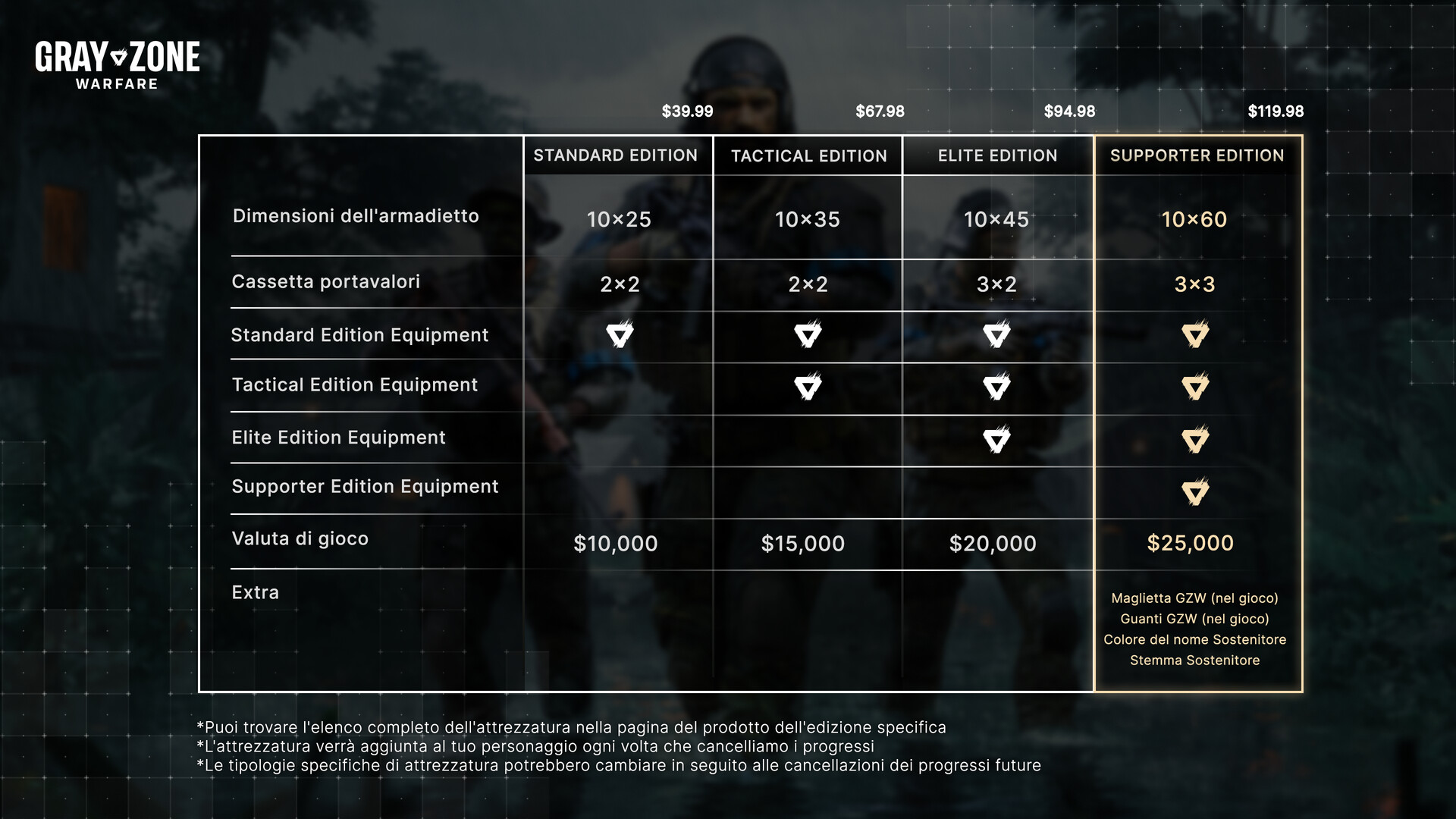 Include 3 articoli: Gray Zone Warfare - Tactical Edition Upgrade, Gray Zone Warfare - Elite Edition, Gray Zone Warfare - Supporter Edition