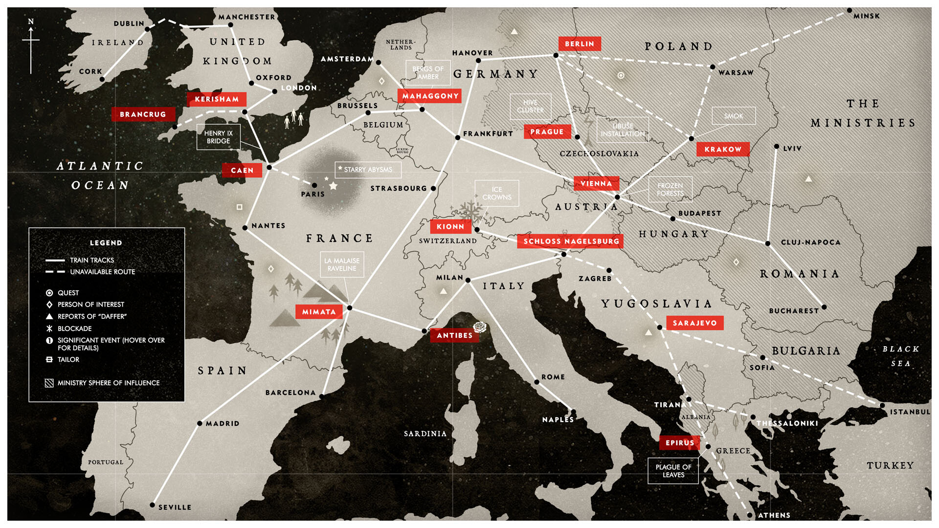 Europe, 1948: myth-scarred ruins, night-sky abysses. Chitinous cities embrace the Change, or struggle against plagues of leaf and amber. The golden Incorporates of the US wage a cold war against the star-touched Ministries of the USSR. And there you are, guiding a carnival of wry, bold, complex characters through seaside sanitarium, Alpine castle, grave, hive, lignified cityscape.