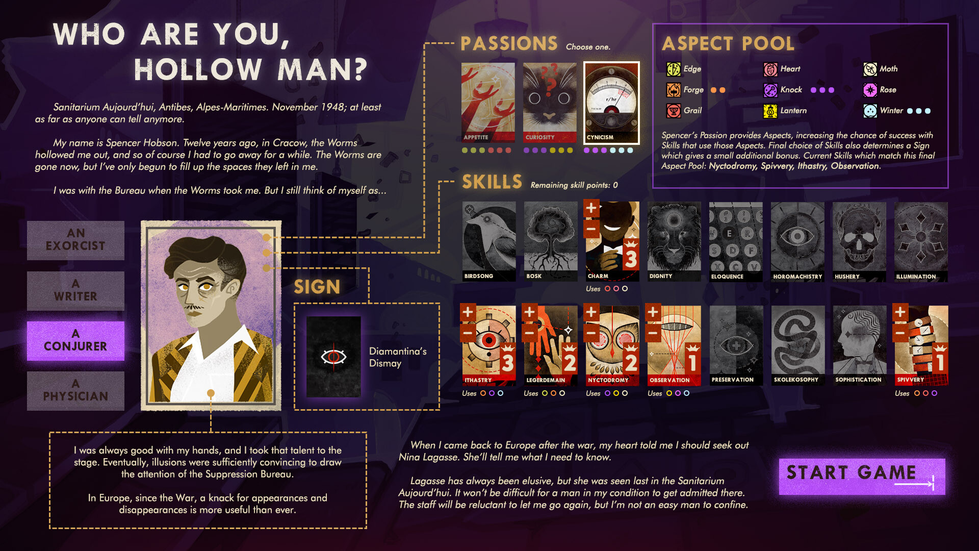 • CHOOSE your Career and Passions. Are you an exorcist driven by Sorrow, a stage magician seeking to feed your Appetite, or a physician who can't resist Curiosity?