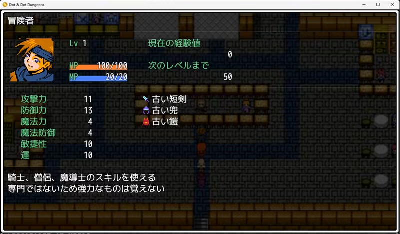 DOT & DOT DUNGEONSとは DOT & DOT DUNGEONSは、潜るたびに毎回構造が変わるダンジョンに挑戦するRPGです。入手した装備品はランダムに性能が決まるため、時には絶大な能力となることもあり得ます。理想の装備を求めてただひたすらにダンジョンをさまよい、その果てにプレイヤーを待つのは…?