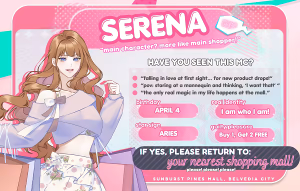 ◆ Play as shopaholic Serena, who's having a delulu romance with plastic mannequins