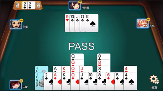 Computers in the game have high intelligence, and different computers also have different card playing strategies.