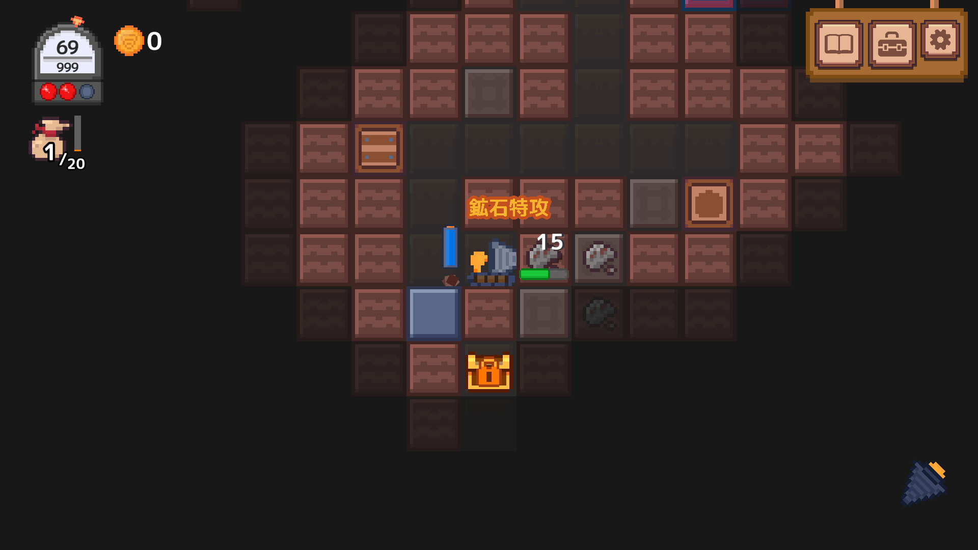 地面をほりながら鉱石や宝箱を集めよう。目指すは999階!