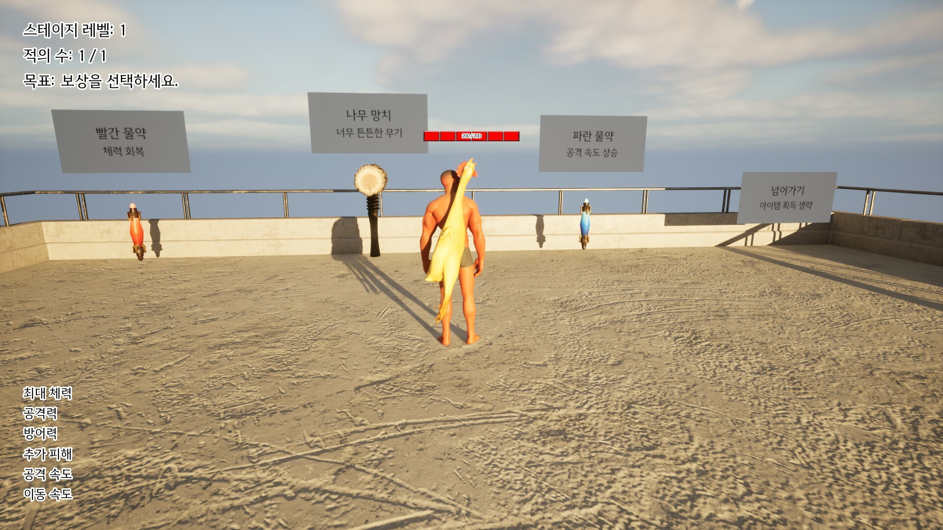 게임은 로그라이크 방식으로 진행되며, 스테이지가 진행될수록 적들은 강해집니다.