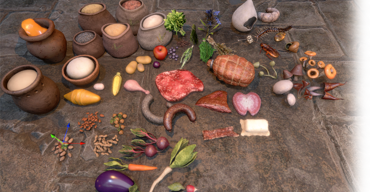 A refined cooking system - both roasting individual ingredients by the fire and cooking meals with several ingredients, the chance to discover recipes (which can also be found or purchased) - thanks to which we will be able to develop character statistics in the direction we want.