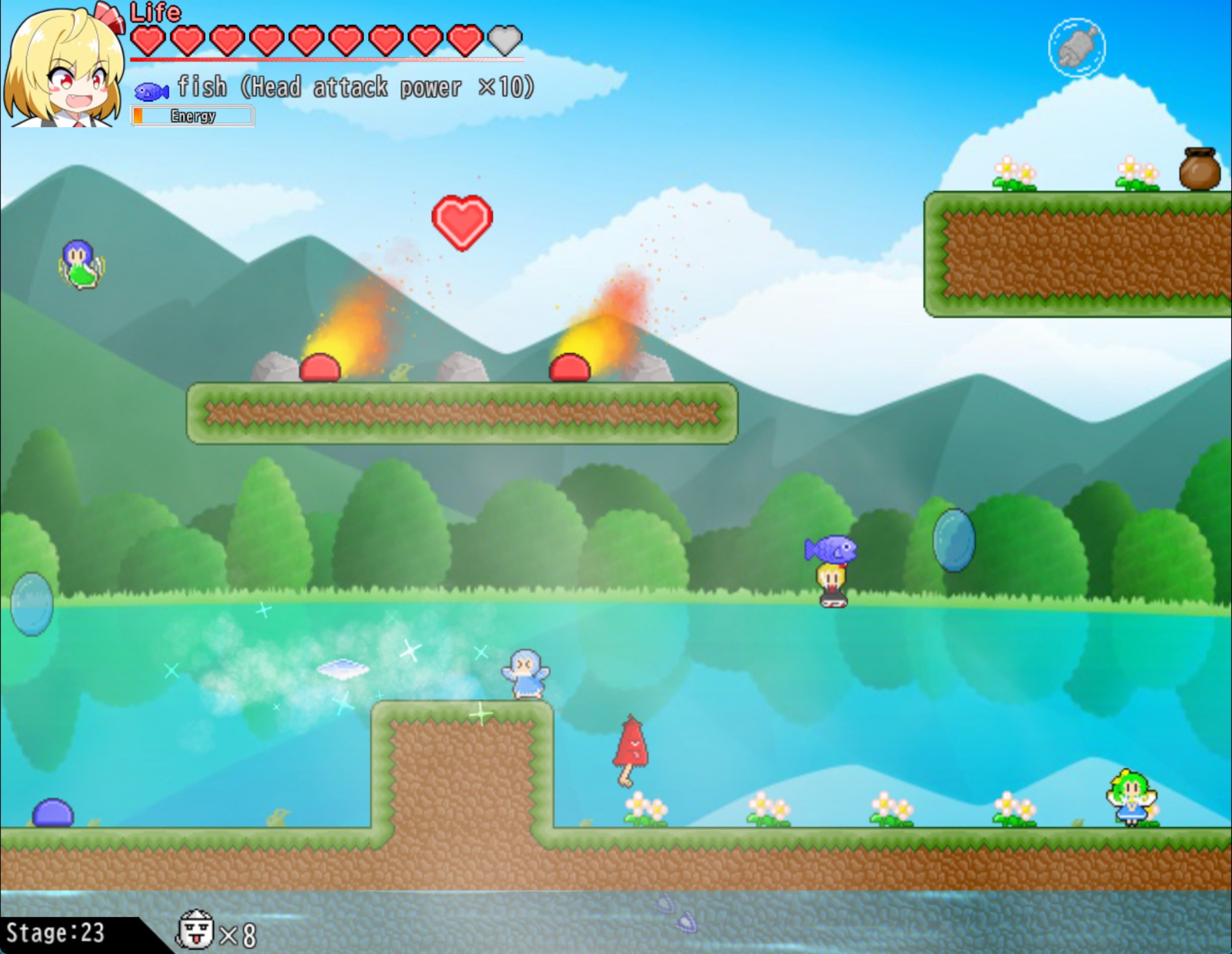 Rumia Throws! is a 2D stage-based action game starring Rumia, a character from the Touhou Project.