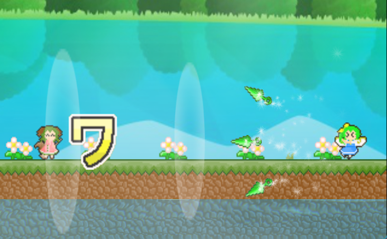 In addition to physical attacks with a broom, she uses sound wave attacks by shouting, and can solidify sound waves to ride or drop them, offering completely different actions compared to Rumia.