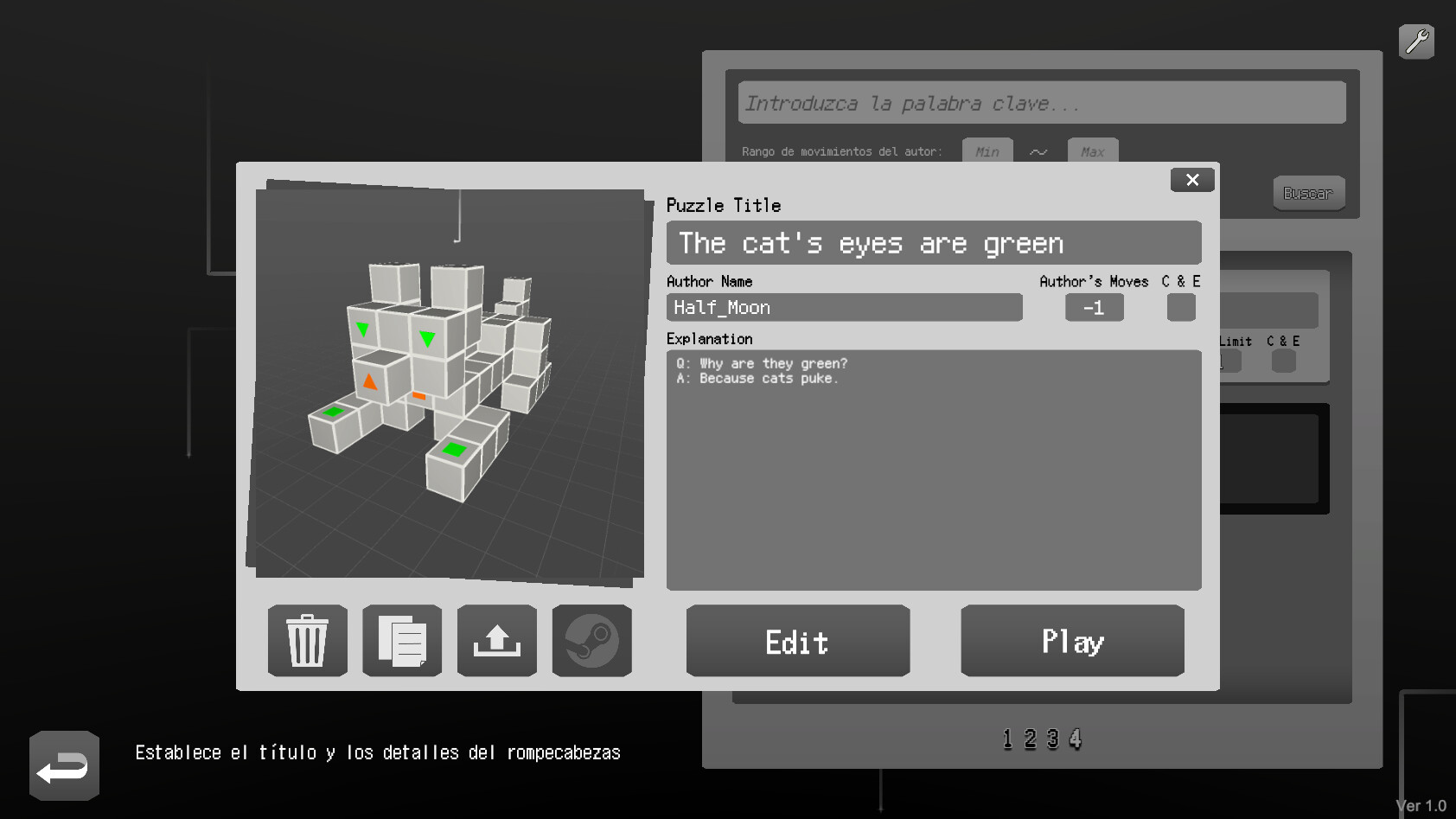 Este juego te permite compartir tus rompecabezas personalizados utilizando la función de Steam Workshop.