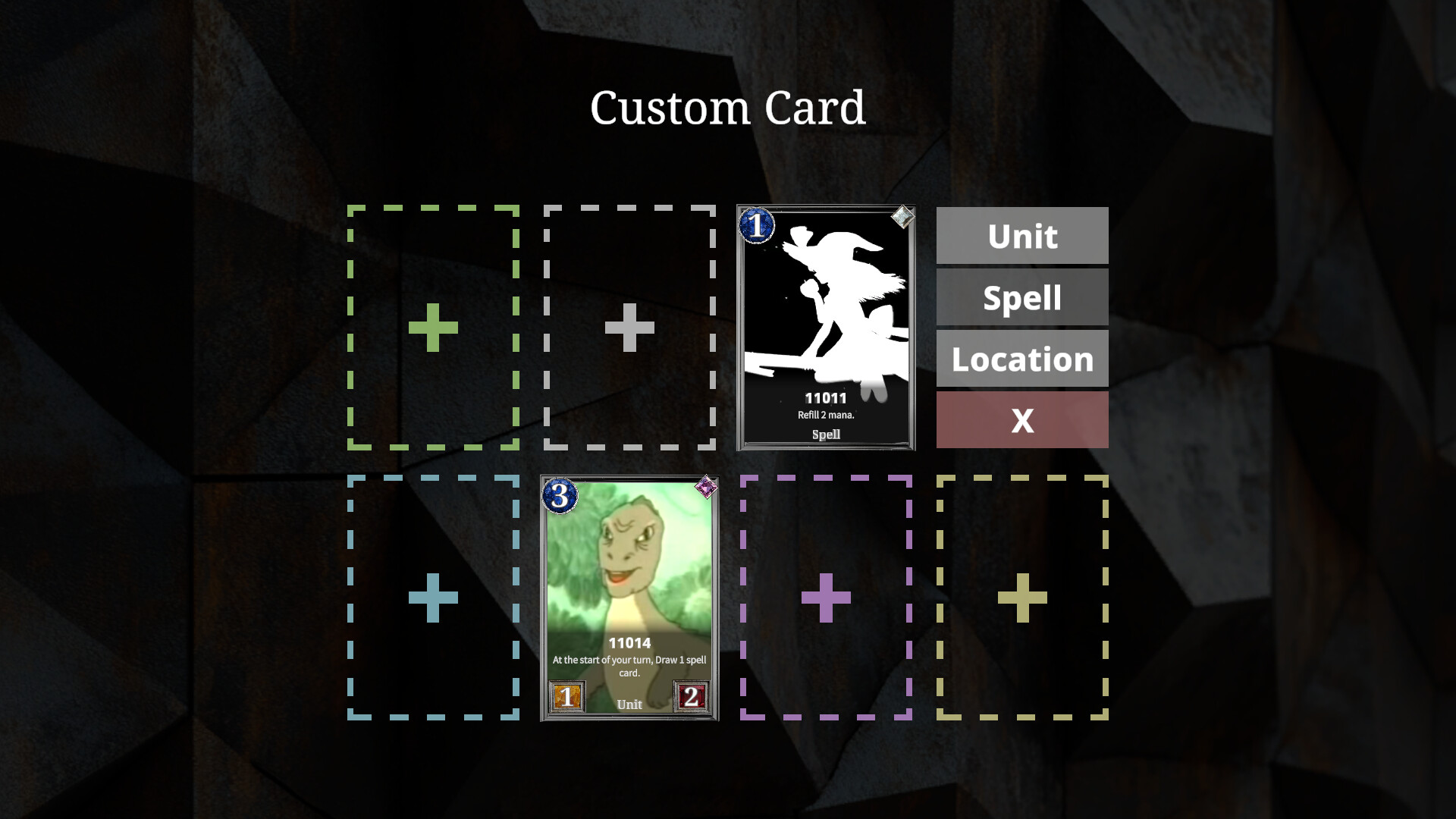 Custom card functions are also available to specify direct illustrations, ability values, and effects.
