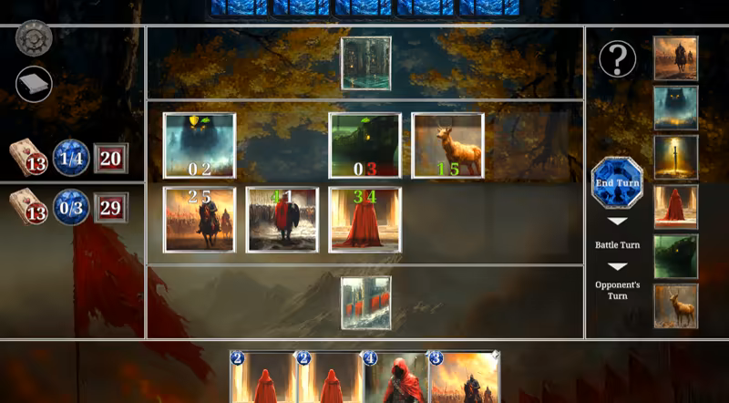 Strategically place units in a field of 10 compartments, check enemy units, and attack to destroy enemy heroes.