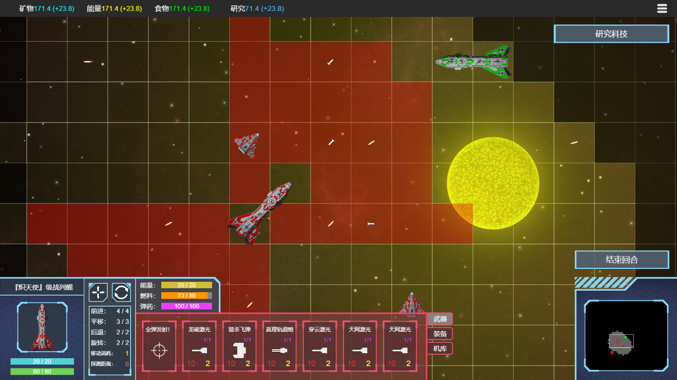 • 舰船移动、攻击都需要消耗能量,每艘舰船都有能量存储上限。