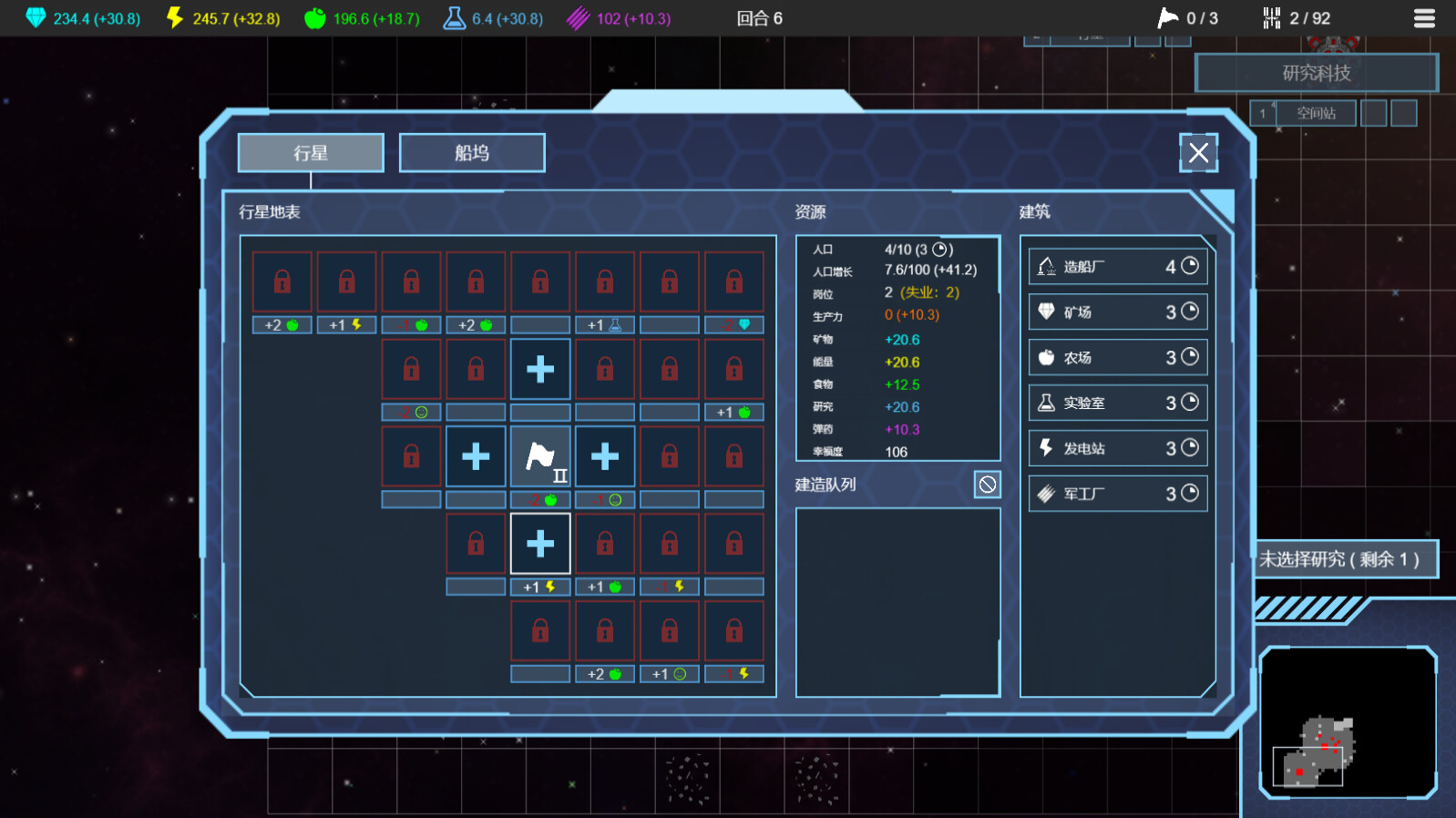 这是一款4x回合制策略战棋游戏,你可以发展你的行星,通过殖民与建造空间站扩张你的版图,研究科技以解锁更多舰船,最终发现并消灭你的敌人。
