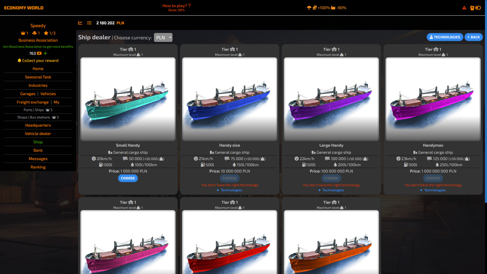 Economy world is a real-time strategy where, together with other players, you try to gain the widest possible market share for your products. You start with simple grain production or mining resources in a mine and try to reach the top, which are bakeries, car or computer factories. It is up to you what direction your company will go. The game has a natural supply and demand game, so other players have an impact on the profits we earn. The raw materials we need can be on different continents, then we will be forced to build ports and buy ships that we will transport to our factories.