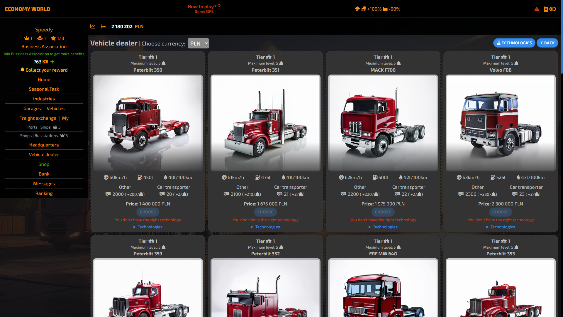 Economy world is a real-time strategy where, together with other players, you try to gain the widest possible market share for your products. You start with simple grain production or mining resources in a mine and try to reach the top, which are bakeries, car or computer factories. It is up to you what direction your company will go. The game has a natural supply and demand game, so other players have an impact on the profits we earn. The raw materials we need can be on different continents, then we will be forced to build ports and buy ships that we will transport to our factories.
