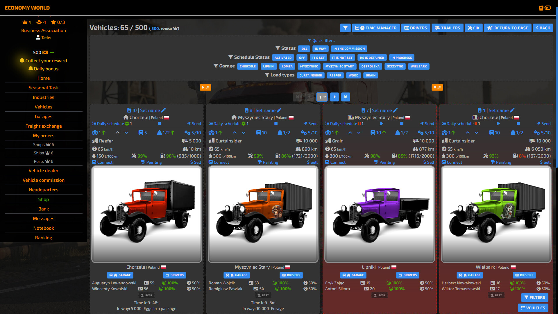 The cars you start the game with are from the 50s, with the development of technology you will have access to more modern trucks with better parameters. We can combine vehicles into convoys thanks to which managing a huge fleet is not a problem. Cars have a wide range of modifications, but first you need to earn points to strengthen them.