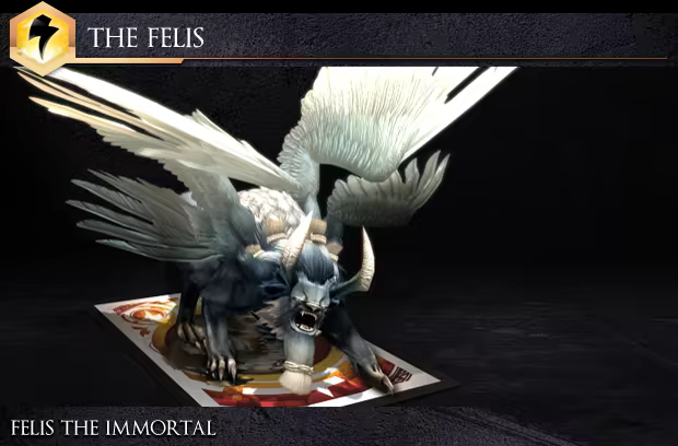 Like lightning, Felis never strikes in the same place twice. Swift in tooth and claw, Felis attacks sunder the sky, armor and your opponents. With verve, fury and tenacity, Felis knows how to be patient when it comes to schooling opponents. Weaken? Never. Fail? Impossible! Even when mortally wounded, Felis can come back from the brink and punish his opponent!