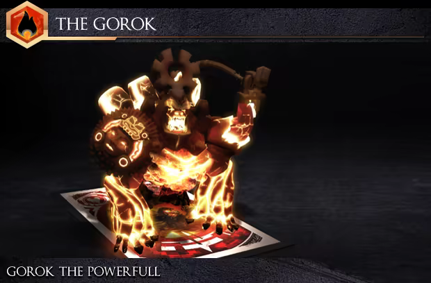 Strong as a rock, that’s the Gorok. But sensitive, too... To cracking and tearing and dismantling! The Gorok is a giant bruise-maker in a world of heavyweight louts. A heart of stone? Yes. But between a Gorok and his Drakoneer is an unbreakable bond. Your Gorok would do anything for you: dismember a few opponents, use their bleached skulls for drums, or fill up the arena with his molten battle-roar. Because that’s what Goroks do.