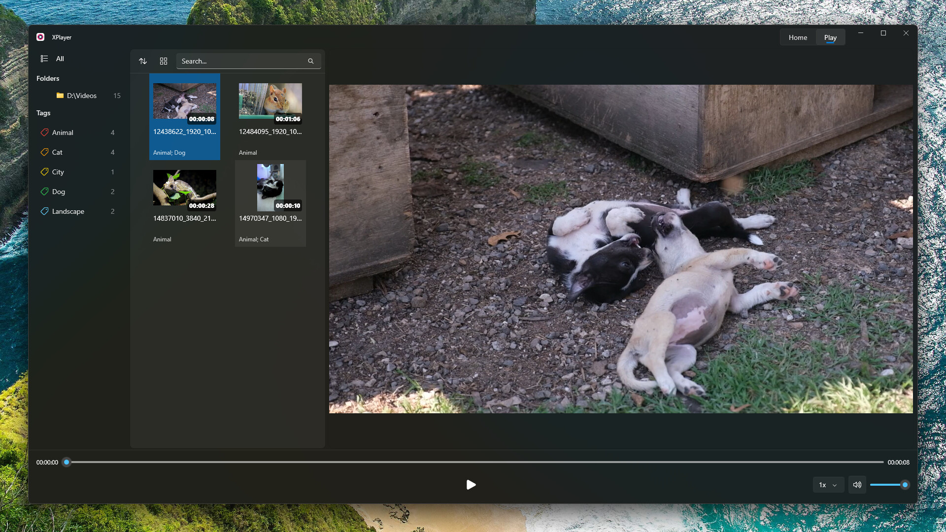 XPlayer allows you to intuitively browse your local media and tag your favorite clips. Watch them in Play View, or create a project from tags and export it as a video file.