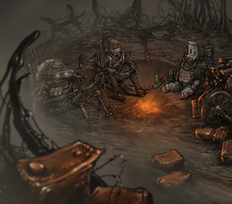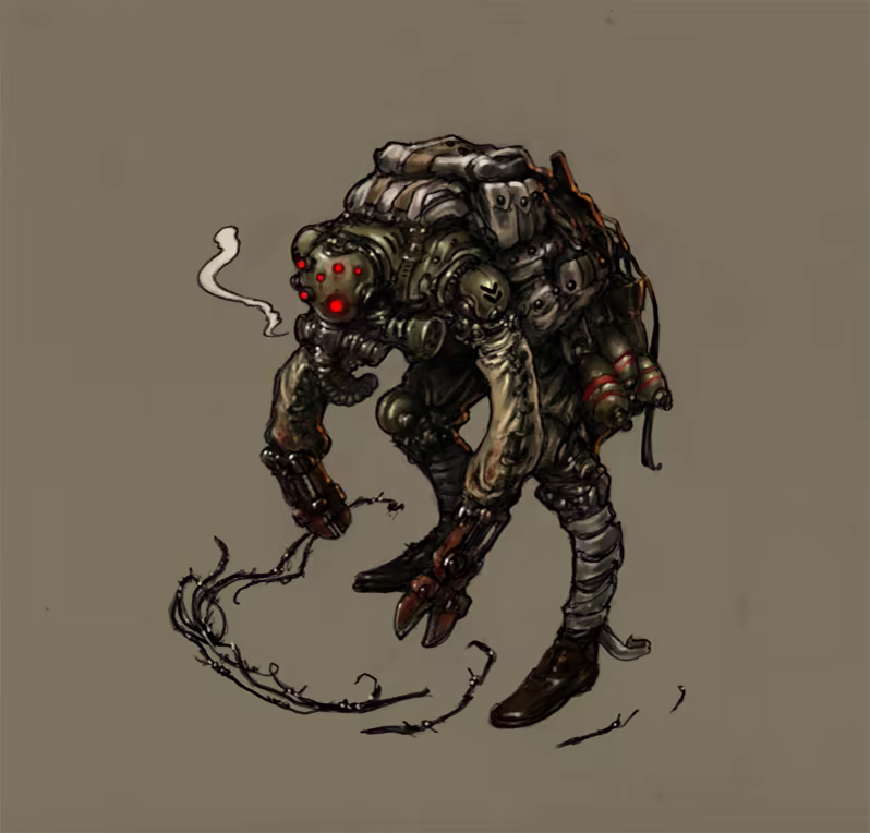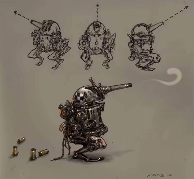 This idea evolved over time, an offshoot of which became the game Primordia which Mords created with the assistance of his newly formed studio. Many years have passed since then and the original idea has evolved many times, the bones of Triptych are a backburner idea which many other ideas sprang from - "Trenchmouth" being chief among those offshoots as well as of course it's predecessor, Primordia.