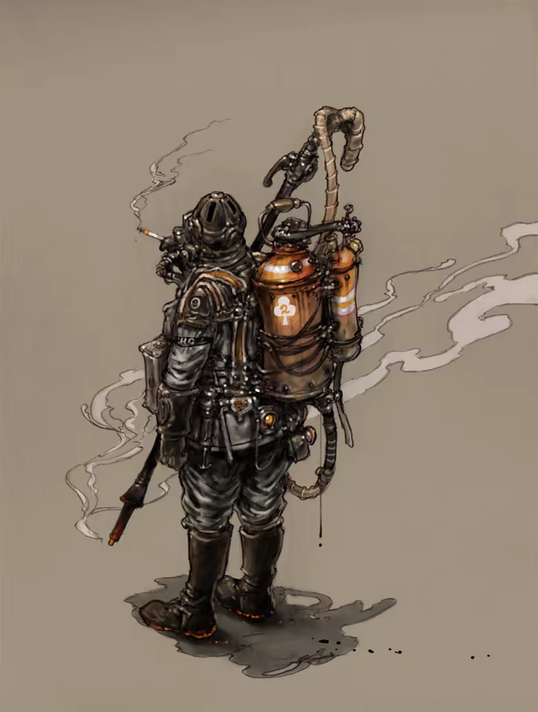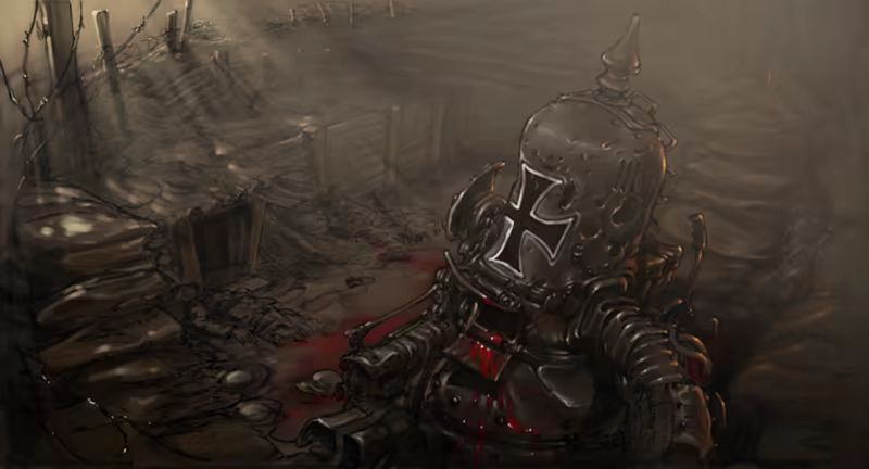 War *is* the world now, soldiers become citizens in battlefields dimply lit by glowing incandescent bulbs. A last bastion of hope chugs through the clouds; the Great Airship Auberon - a last holdout and floating fortress now about to come under duress & betrayal.