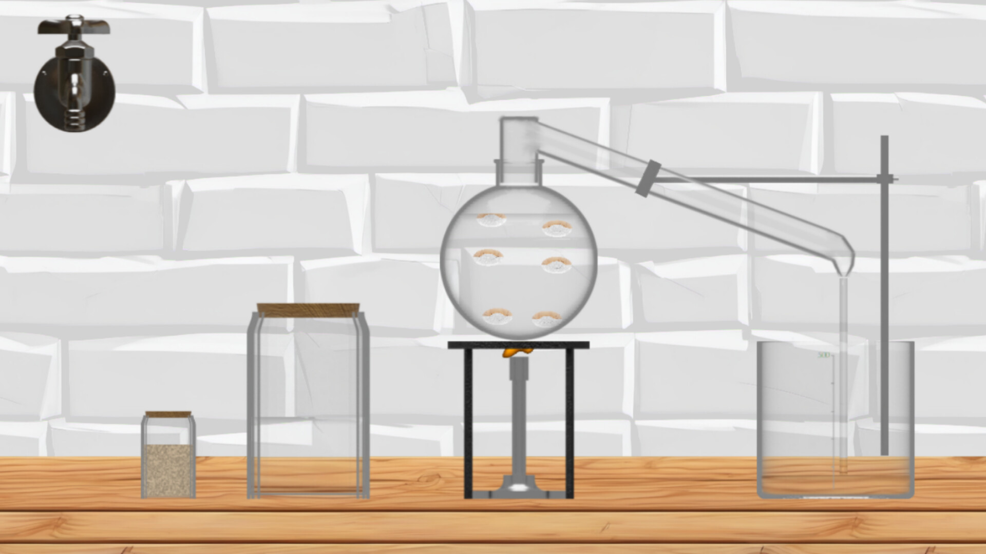 Follow recipes to produce desired outputs (e.g. Soap, Aspirin, Ethanol) and then sell them or test given chemicals for it’s content.