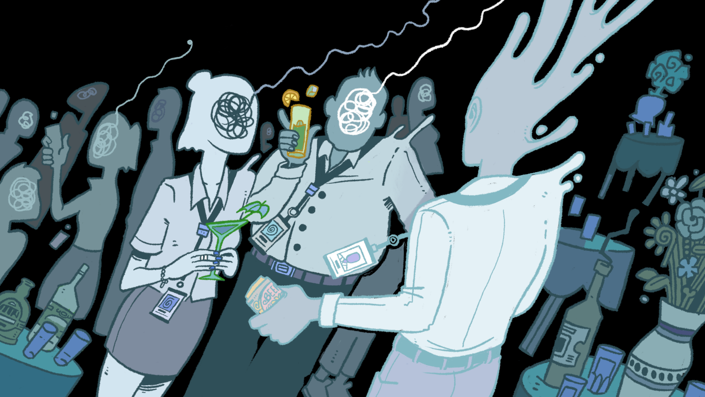 Explore the liminal space of a creepy hotel, find interesting strangers, and learn lessons vicariously through the brief glimpses of their lives that you can peer into - or just make an ass out of yourself until you pass out drunk in someone's bed.