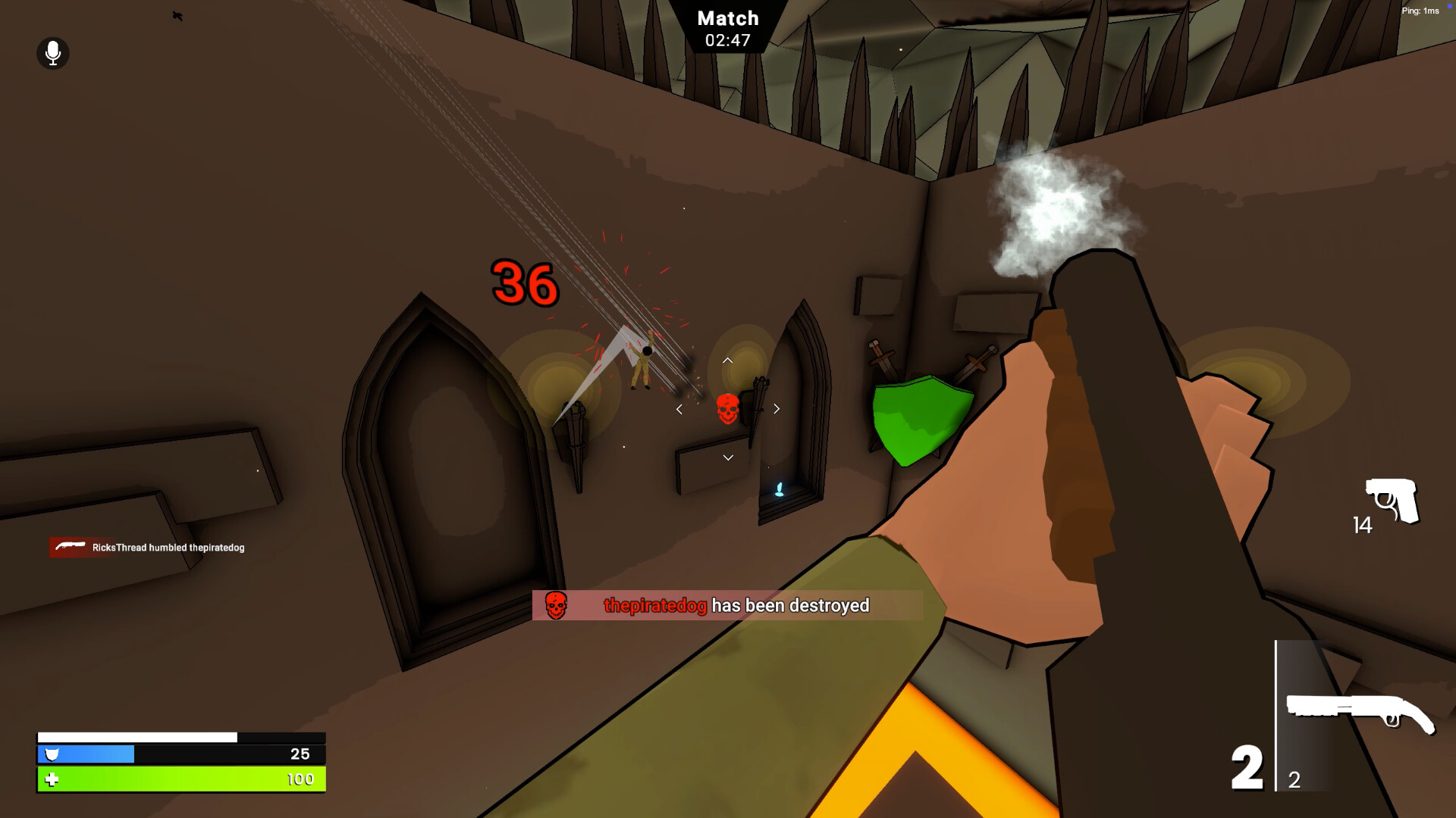Fight other players in a fast paced environment with gravity that behaves differently across various maps.