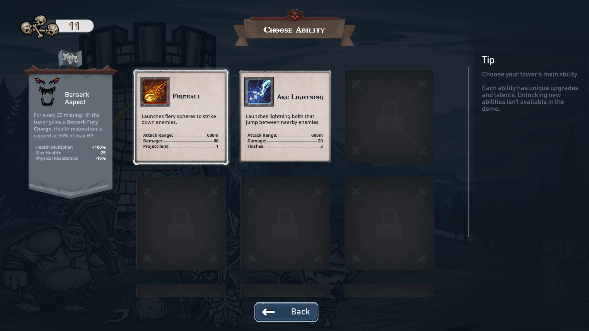 As zombies grow stronger, your tower must too! Use gold to buy a wide range of upgrades from the shop, which you can access anytime during the level. Enhance your defense with talents, buffs, auras, and effects. Open treasure chests as you play to get free upgrades. Collect skulls dropped by zombies and complete achievements to unlock new towers, upgrades, and talents for deeper build variety.