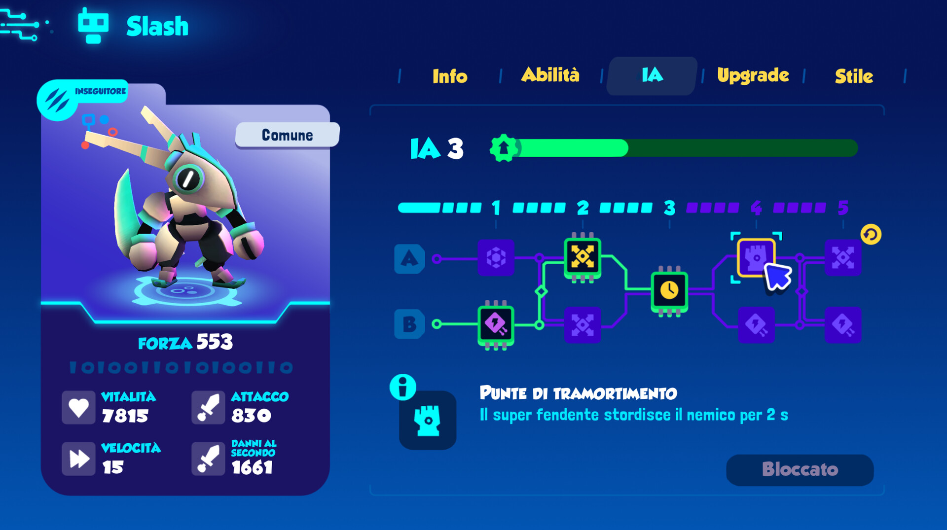 Sconfiggi gli avversari in battaglie strategiche in tempo reale. I bot salteranno, caricheranno, stordiranno o spareranno in tutta l’arena grazie al sistema di IA avanzato, ma spetterà a te calcolare il momento esatto per attivare le abilità (come Missile di ghiaccio e Muro del fuoco) per dare supporto alla squadra e annientare i nemici. Ogni bot ha abilità uniche e una potente ultimate che, combinate alle strabilianti abilità del giocatore, ti permetteranno di conquistare il titolo di miglior botmaster. Ogni vittoria ti conferisce punti per sbloccare nuove IA avanzate e opzioni strategiche da utilizzare nell’arena PvP per scalare la classifica globale.