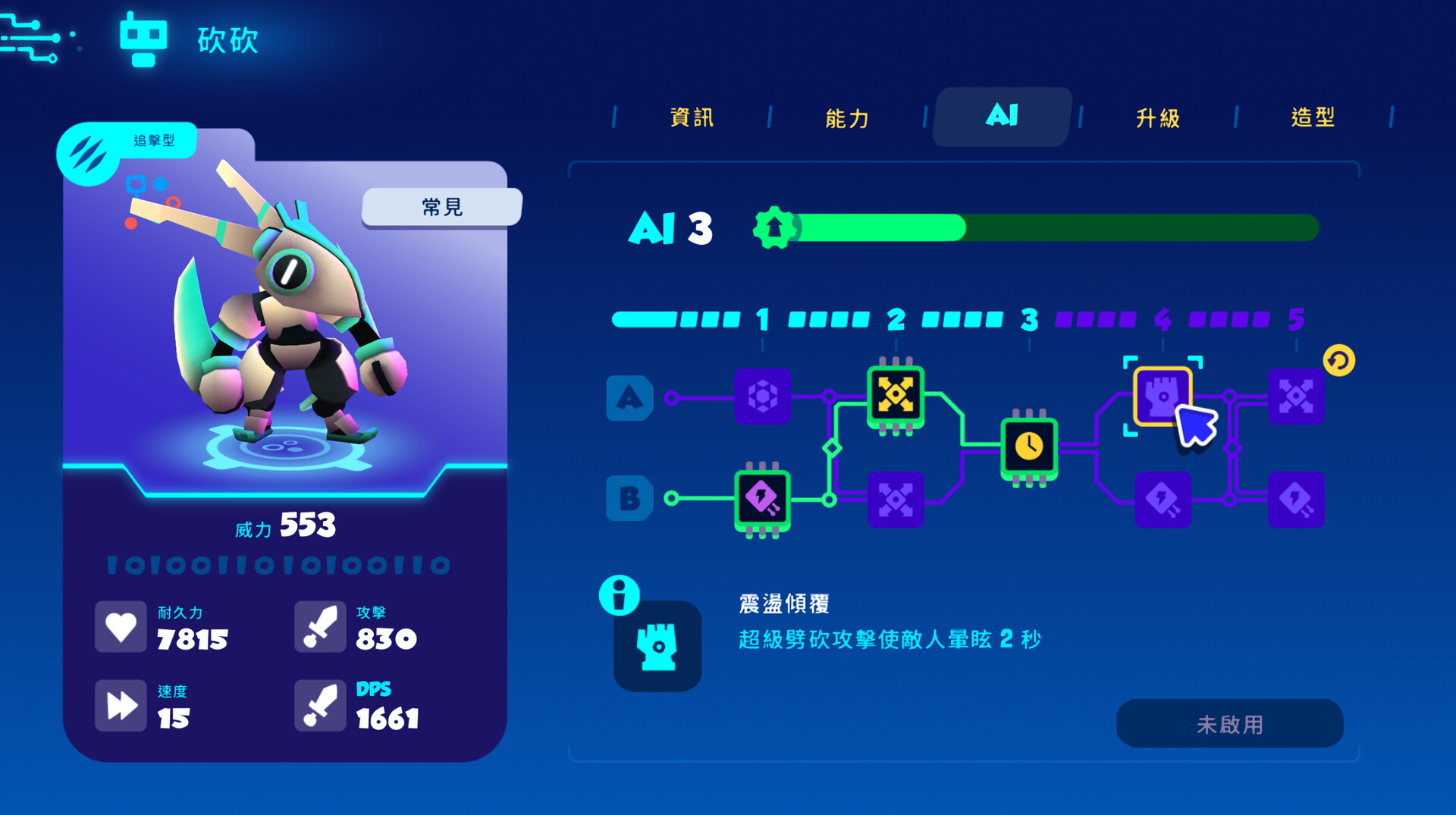 • 自訂玩家角色與機器人隊伍,在升級的過程中學會新的技能