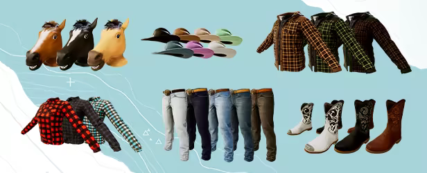 • 2 ‘Ten Gallon Stallion’ Hats: in 7 color variants each