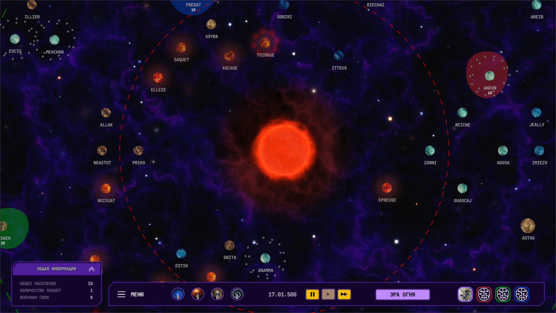 Возьмите на себя роль руководителя группы волшебников, прибывших в новый мир. Начните с управления одной планетой. Стройте здания, распределяйте людей по промышленности. Возводите новые здания. Захватывайте близлежащие планеты и расширяйте свое влияние.