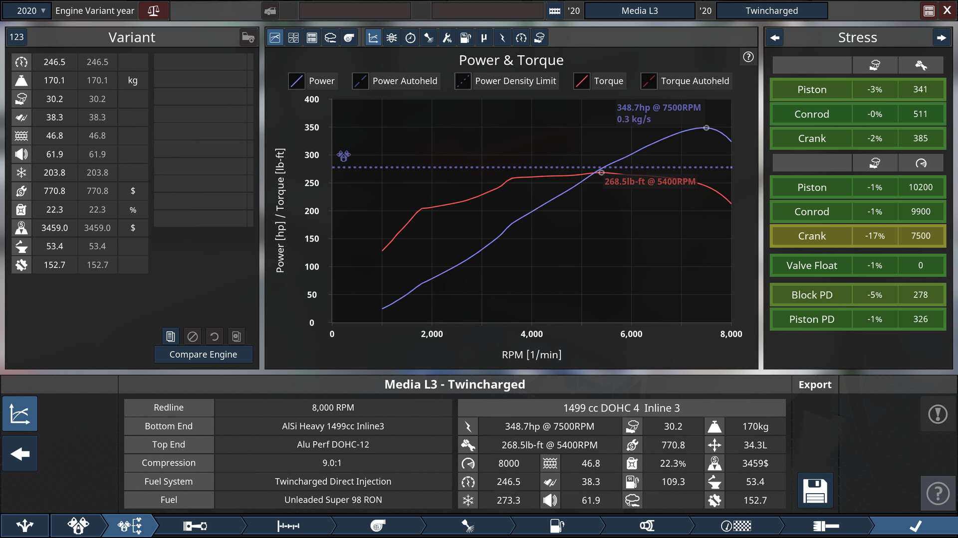 In Automation, players use the comprehensive engine and car design tools to turn their ideas into reality; shape, cut, re-shape and adorn thousands of car bodies with a wide variety of lights, mouldings and other parts to achieve the style you want. Design the perfect engine to go in your car; whether it is a large, powerful V12 or a small, efficient inline-3, nearly all common engine layouts are possible!