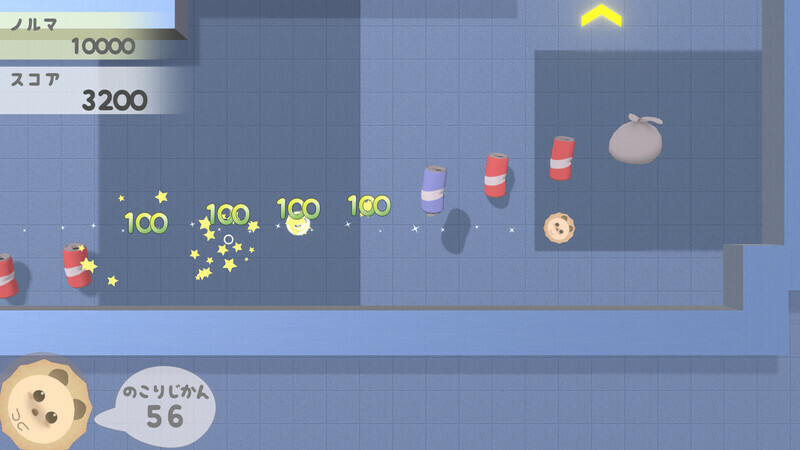 くるくる回るクリーナーを操作し、掃除用具を組み合わせ、ごみを片付けよう。移動だけの操作で、各ステージ90秒で様々な掃除用具と結合して、ハイスコアを目指そう。