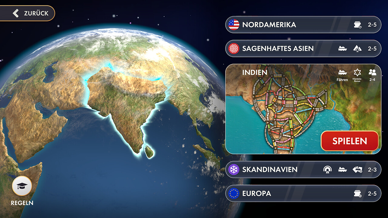 Nutze Fährstrecken oder bleibe an Land, während du den einzigartigen Mandala-Bonus jagst – verliehen an Spieler, die dieselben Städte auf mehrere Arten verbinden! Triff zwei neue Charaktere und füge deiner ständig wachsenden Flotte zwei weitere Lokomotiven und Waggons hinzu.
