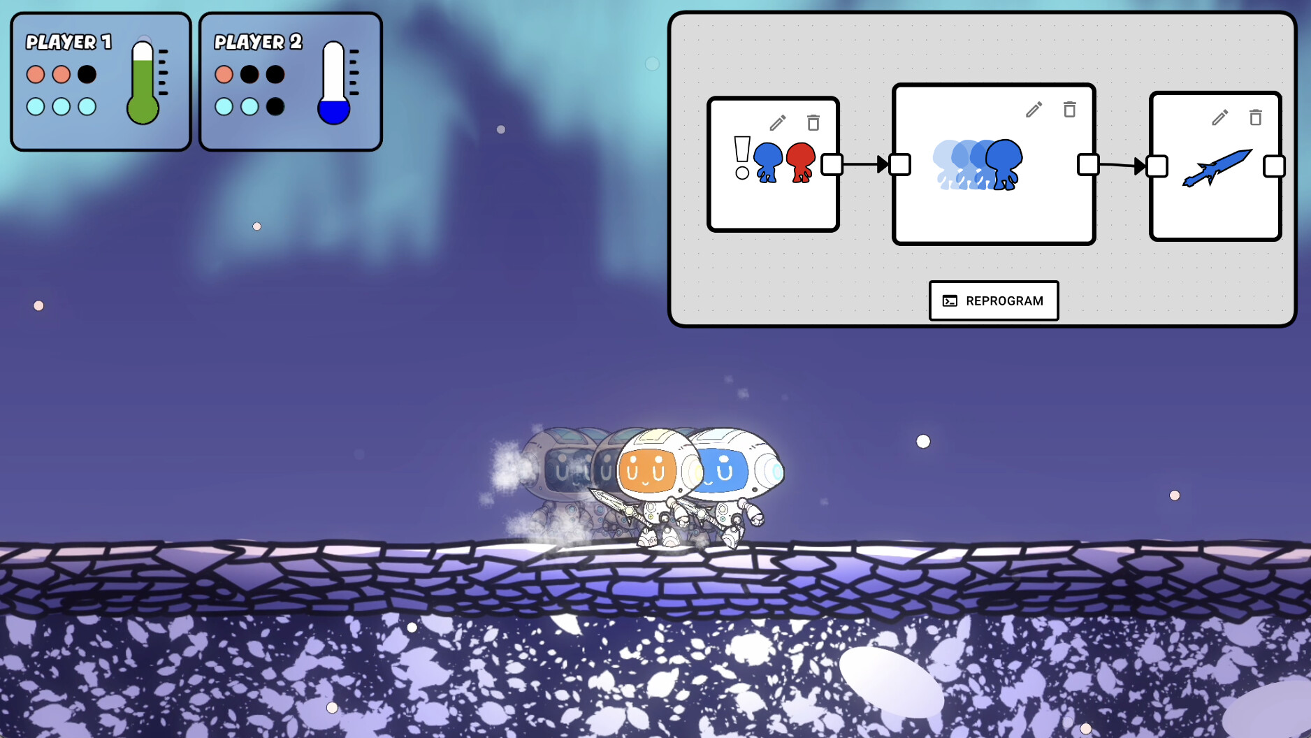 Don't like playing with people ? We got you covered ! Fight the miscoded in the solo mode and travel through many worlds ! These formidable foes were injected a malicious program so be ready ! Teach your robot how to navigate through post-apocalytic levels filled with platforms, enemies, dangerous traps and a mysterious lore.