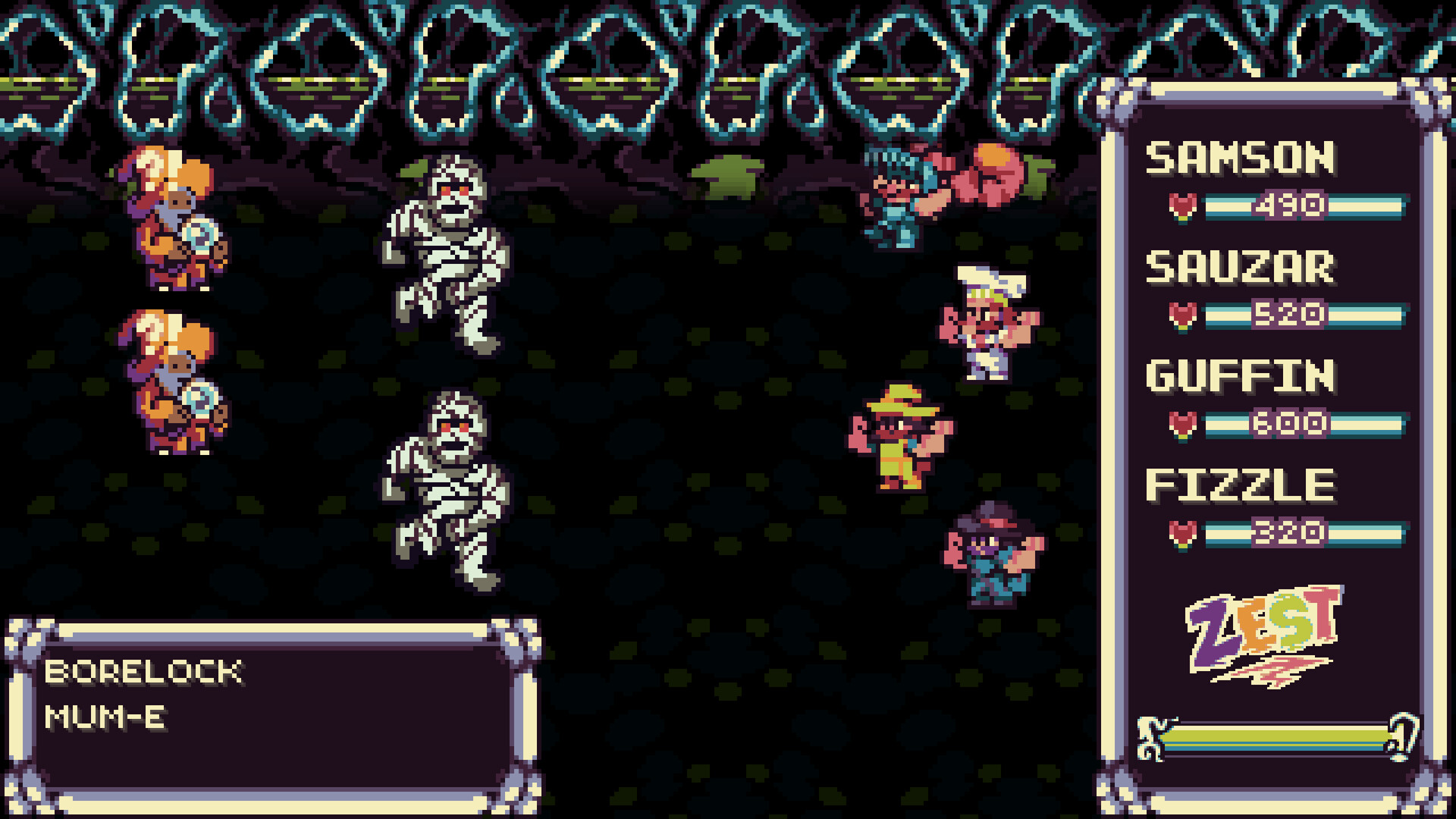 • A retro jRPG mixed with elements of cozy games. Strategic turn based combat is mixed with an idle quest system, minigames, and a world equal parts funny and mysterious.